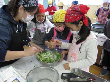 4年生 収穫祭がありました 水菜のチヂミ編その3