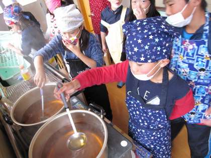 4年生 収穫祭がありました 水菜のはりはり鍋編その2