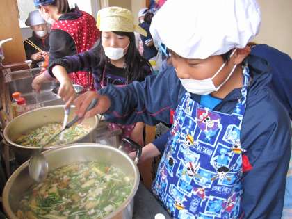 4年生 収穫祭がありました 水菜のはりはり鍋編その3