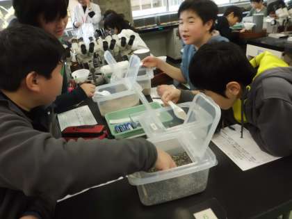 科学センターへ行き,「砂」についての学習をしました。いろんな場所の砂を見て,触って,気付いたことを交流し合いました。