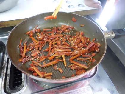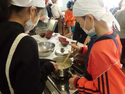 仕上げに,「調味料で味付けをしてごまをかける」・「みそをとく」という作業をしました。ジューッという音に,思わず「お〜!」と嬉しそうな声を上げていました。