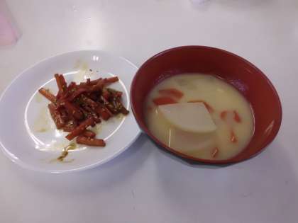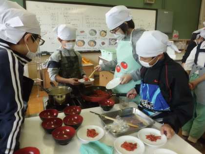 盛りつけも友達と協力してていねいにできました。手早くおいしく出来上がりました。
