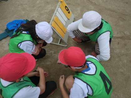 作戦タイムで勝ち方をチームで考えます。
