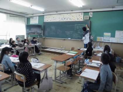 4年生も大変難しい問題に取り組んでいました。先生にポイントを聞きながら,学習を進めていました。