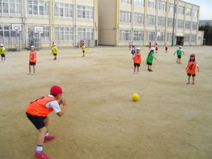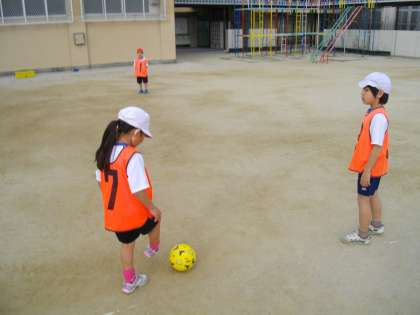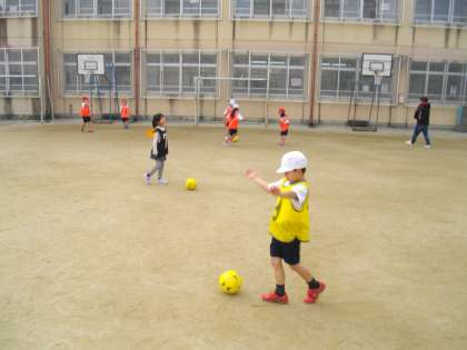 ボールを一度止めてからけるのが,なかなか難しそうです。練習をして上手になろう。