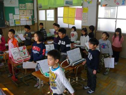 音楽の時間に,ビリーブの歌を練習しました。6年生を送る会で歌います。子どもたちは,きれいな歌声で歌っていましたよ。