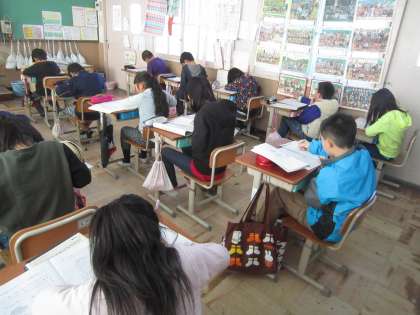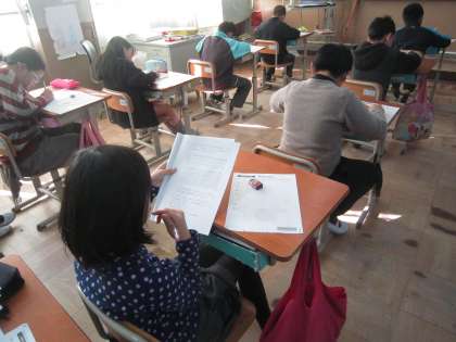 プレジョイントプログラムテストに取り組んでいます。いよいよ今日で3教科目。もう一息がんばりましょう!