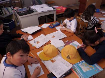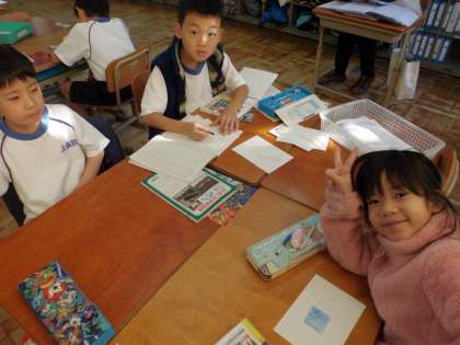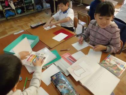ものの名まえについて学習の中で,お店やさんごっこの準備をしています。