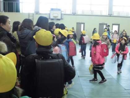 子どもたちが体育館に集まって,校長先生のお話を聞いたあと,4くみ・1年生の保護者から順に,保護者に引き渡しました。昨年度よりも,スムーズに時間も短時間で引き渡すことができました。保護者の皆様,ご協力ありがとうございました。