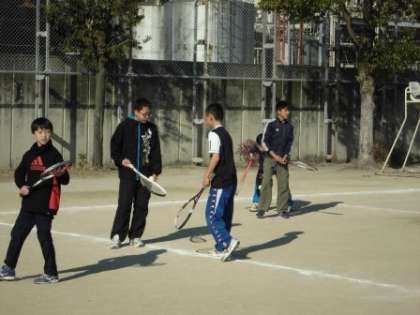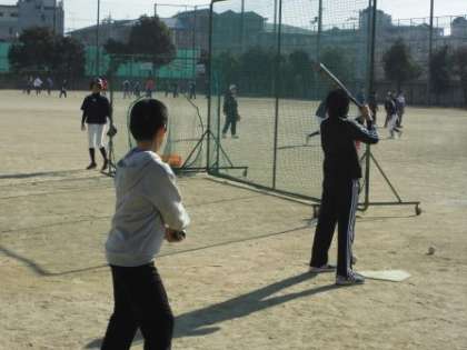 野球は,バッティングやキャッチボール,試合形式の練習を行いました。帰り道では,「とても楽しかったなあ」と参加した子どもたちの声が挙がっていました。ソフトテニスでは,ボールを使って,ラケットの面をしっかりボールに当てる練習をしていました。細かいところまで,具体的に中学生が教えてくれました。