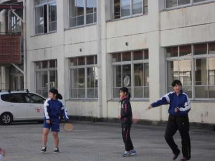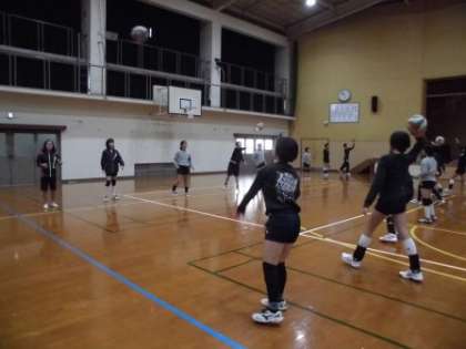 バレーボール部は,パスやサーブ練習,コートに入ってのレシーブ練習など,たくさんの練習をしていました。バドミントン部は,素振りを何度もやったり,コートに入ってシャトルを打つ練習をしたりしていました。