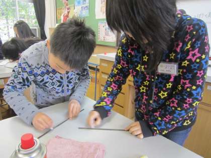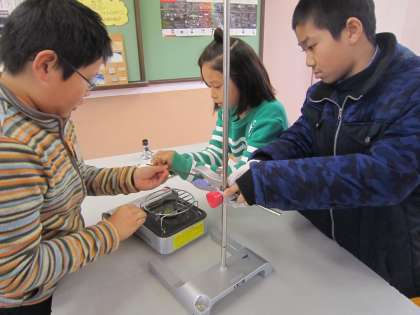 理科の学習では,理科室で実験をしています。たくさんの発見を見つけられてとても楽しく学習することができましたね。