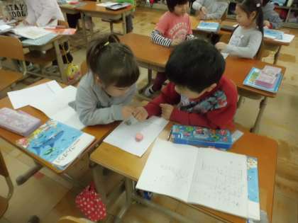 算数で100までの数を学習した後,すごろくをして大きな数に親しみました。さいころの目に願いを込めて楽しんでいる姿が見られました。