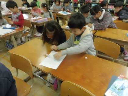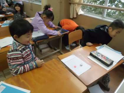 算数で100までの数を学習した後,すごろくをして大きな数に親しみました。さいころの目に願いを込めて楽しんでいる姿が見られました。