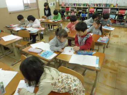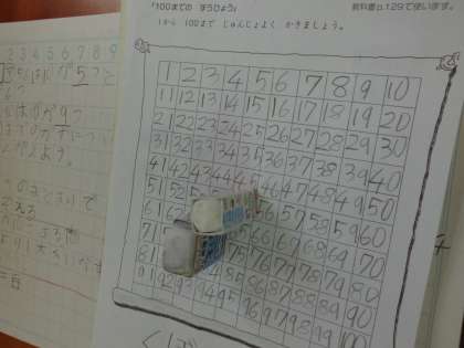 算数で100までの数を学習した後,すごろくをして大きな数に親しみました。さいころの目に願いを込めて楽しんでいる姿が見られました。