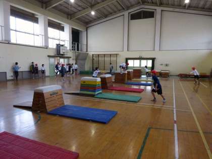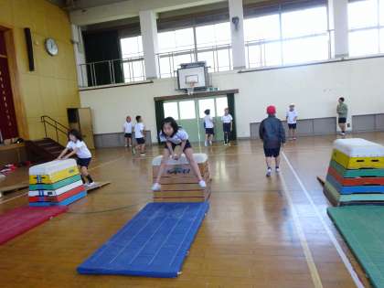 今日は1年ぶりのとび箱なので,体ならしとして何段が跳べるのか確認をしました。