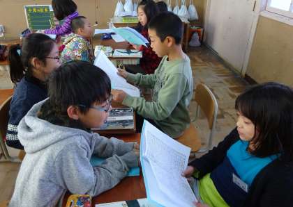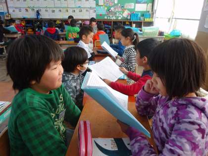 今日は完成した読書感想文を聞き合い,感想を言い合いながら