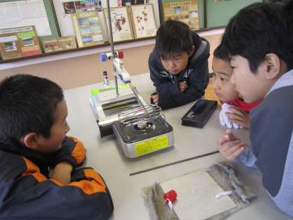 理科の学習では,「もののあたたまり方」について,理科室で実験を通して学んでいます。今回は,金属の温まり方について予想し,実験して確かめていきました。