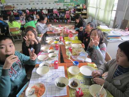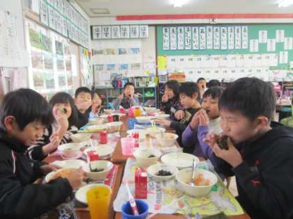給食時間,とても楽しいです。みんなで楽しく食べることができましたね。
