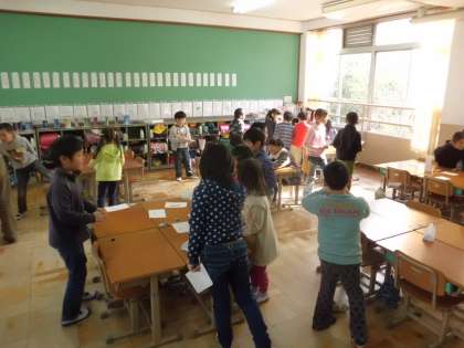 国語で「ものの名まえ」を学習した後に,お店屋さんとお客さんに分かれて遊びました。ほしいものを探しながらみんなで楽しみました。