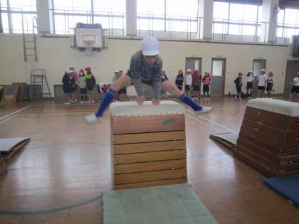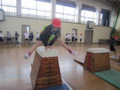 とび箱運動では,跳べる高さやできる技が増えてきました。これからも続けていけるといいですね。