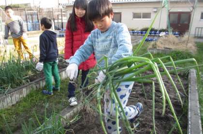 収穫のコツを地域の方に聞きながら,作業を進めました。