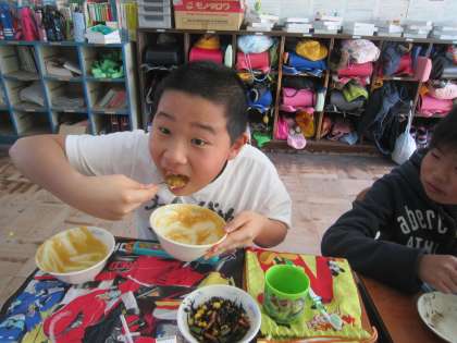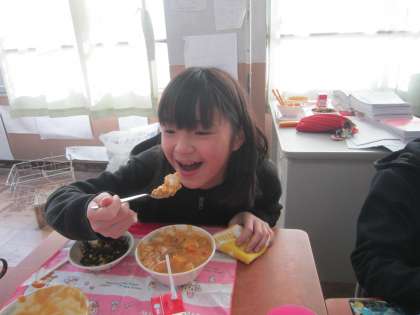 おいしい〜って声が聞こえてきそうです。あっという間に食感が空っぽに…給食調理員さんに感謝の気持ちをもって食べました。