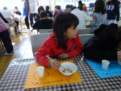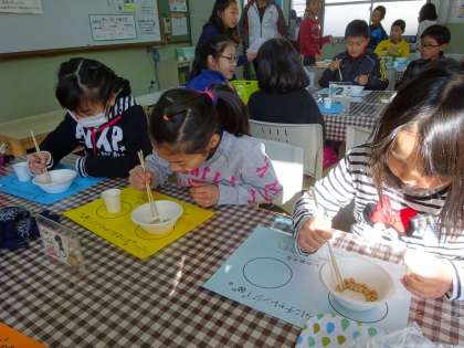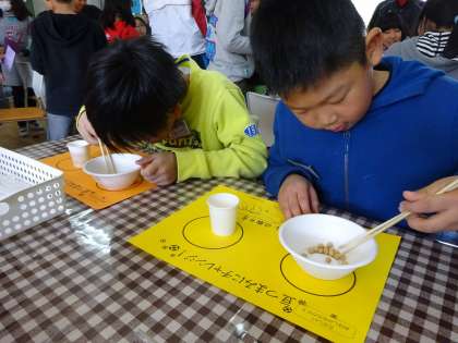 小さなコップに豆をおはしでつまんで運ぶことはなかなか難しかったですね!
