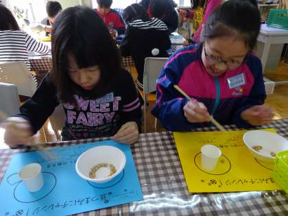 「あー!むずかしい!」「豆が逃げていく〜!」と悔しそうな声も聞こえてきましたね。