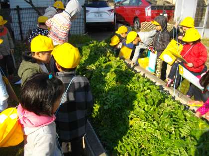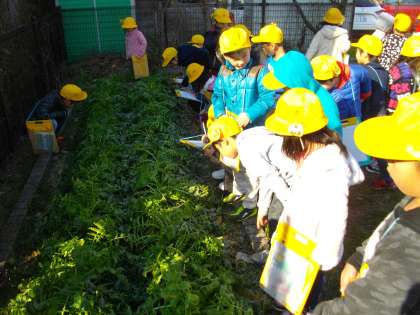 昨日,収穫前最後の聖護院大根の観察をしました。とても大きくなっていて,早くぬいてみたくなりました。