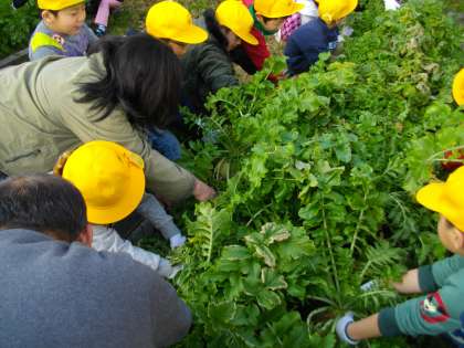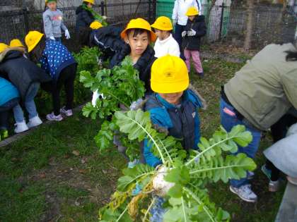 さあ,収穫開始です。大根が抜けたら,「わあ!大きい!すごい。」と子どもたちから歓声が起こりました。
