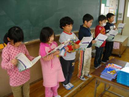 学習しているたぬきの糸車の音読を練習しました。みんなでそろえて読むことをがんばっています。