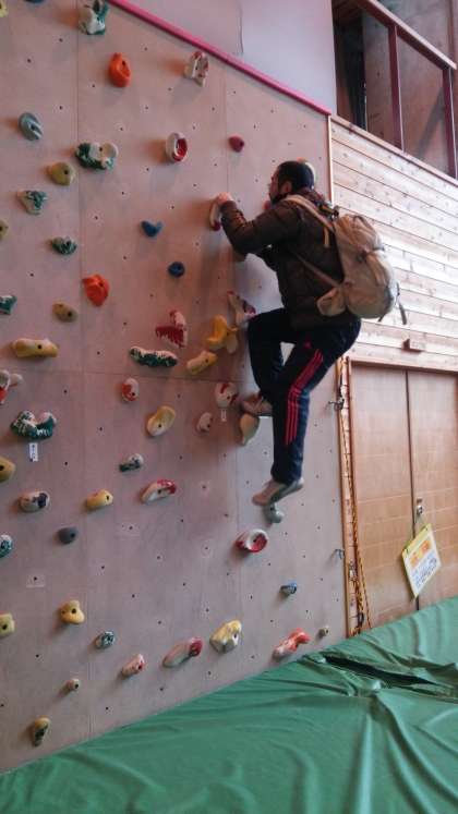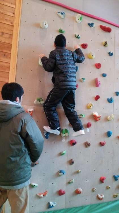 プレイホールでのボルタリングです。見た目以上にハードです。子どもたちや先生も,寒さを忘れるほど汗をかいて活動しています。