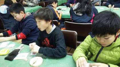 花背山の家での最後の活動「ウッド写真立て作り」です。お土産になるので,わくわくしますね。
