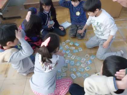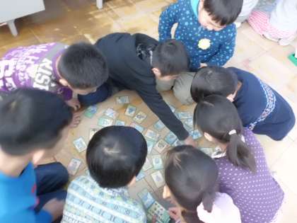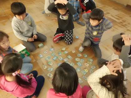 みんなで仲良く遊ぼうと「いろはかるた」や「めんこ」をしました。