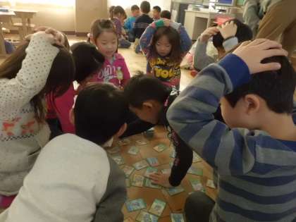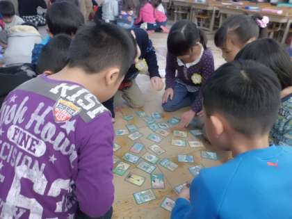 読み札を読むことや取り方のルールも今までの遊びの経験から自分たちで決めて楽しんでいました。