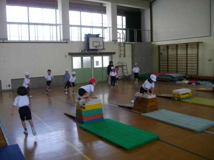「またぎのり またぎおり」「よことびこし」「とびあがり とびおり」などいろいろな技に挑戦しています。