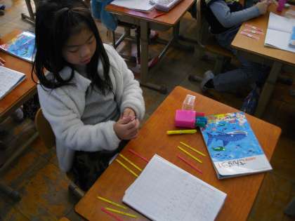 絵にかいたり,数え棒を使ったりしても考えています。