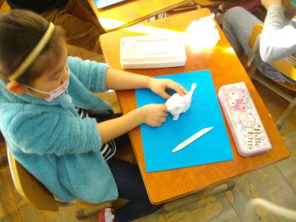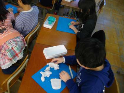 いろいろな動物とお散歩を考えて,粘土で作品を作りました。