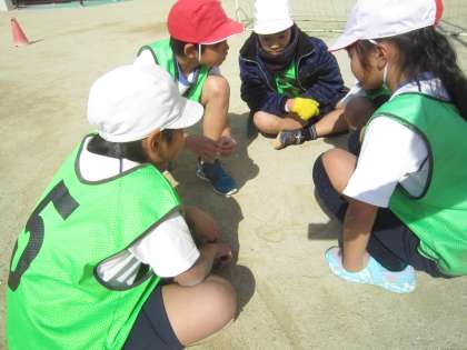 体育のサッカーも中盤になり,どんどん上達していく姿が見られました。なかまと作戦を立てている姿が素敵ですね。