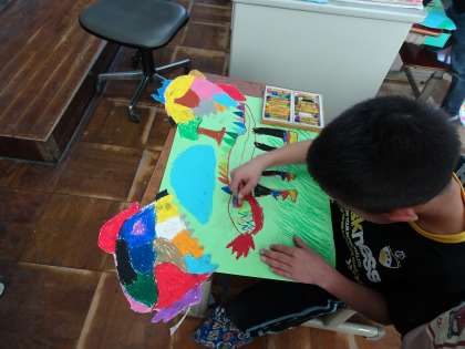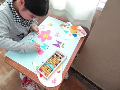 図工の学習で,「ふしぎなたまご」の絵を描いています。