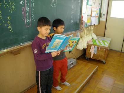 国語で「どうぶつの赤ちゃん」を学習しました。教科書では,ライオンとシマウマの赤ちゃんについて書かれていました。自分の好きな動物の赤ちゃんについても調べて発表しました。