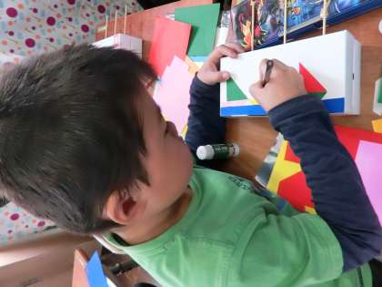側面の部分に折り紙で貼っているところです。