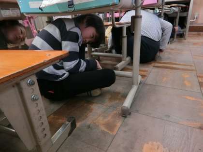子どもたちは,素早く机の下に