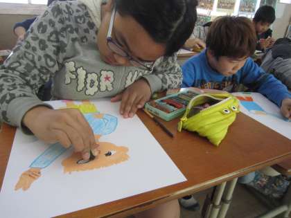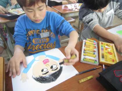 卒業式に向けたかざりづくりが始まりました。4年生の担当は,人物です。楽しそうな表情になるように工夫してかくことができました。