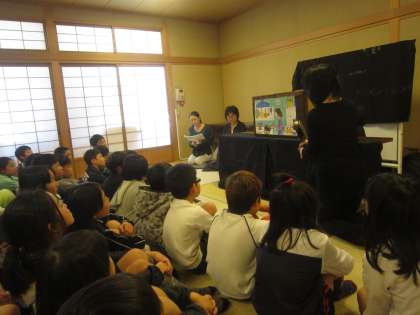 図書ボランティアさんによる紙芝居がありました。たくさん工夫されてたので,紙芝居の世界に入り込むことができましたね。
