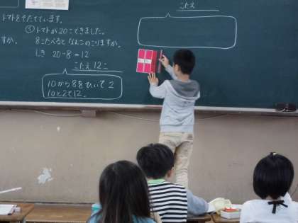 算数「たしざんひきざん」では,くりあがりやくりさがりの計算の仕方を数え棒を使ってかんがえました。