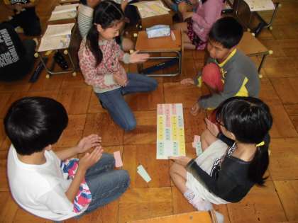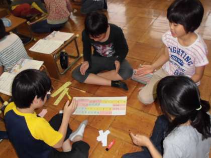 「おいかけるようにしよう」「おーまーつーりーと重ねよう!」「一度あわせてみよう!」など話し合いをしながら,リズムづくりをしています。