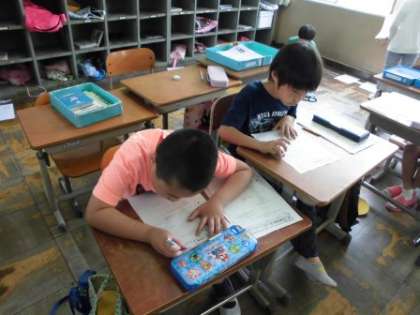 3年生もたくさんの子どもたちが土曜学習に参加しました。算数のプリントやドリルに進んで取り組んでいました。