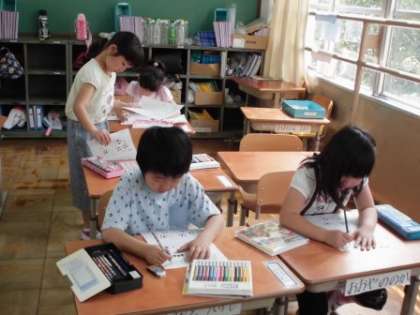 1年生は,初めての土曜学習でしたが,普段の授業と変わらず,とても一生懸命算数のプリントに取り組んでいました。分からないことは先生に聞くだけでなく,友だちどうしで教え合いっこして,仲よく,楽しく学習していました。
